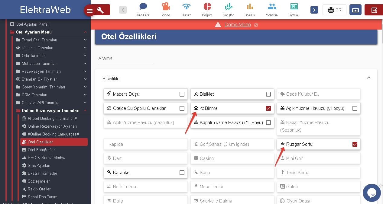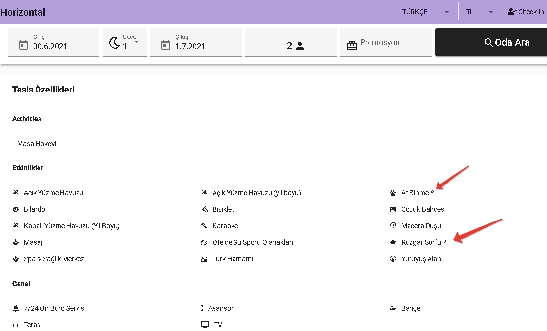 Otelinizde düzenlenen tüm faaliyetleri, otelinizin müşterilerine sunduğu etkinlikler, hizmetler, servisler ve genel anlamdaki otel özelliklerini, Booking sayfanızın alt kısmında belirtebilirsiniz.Özelliklere ait kutucukları tiklemeniz durumunda, belirttiğiniz özellik ücretli duruma gelecektir.